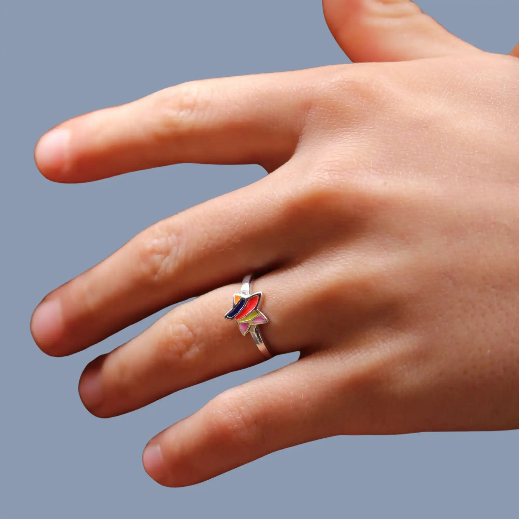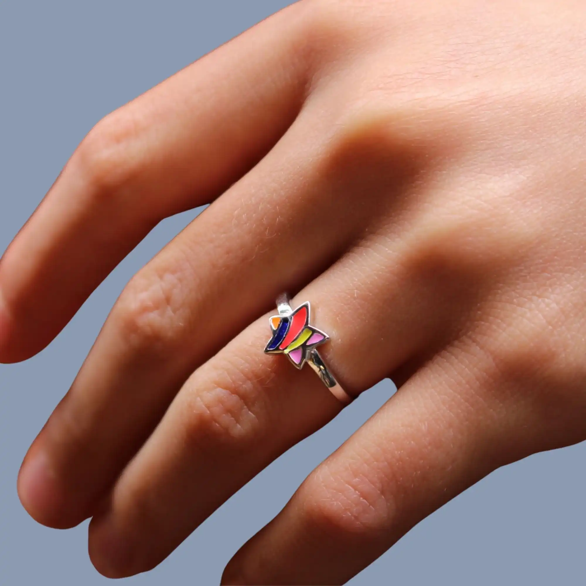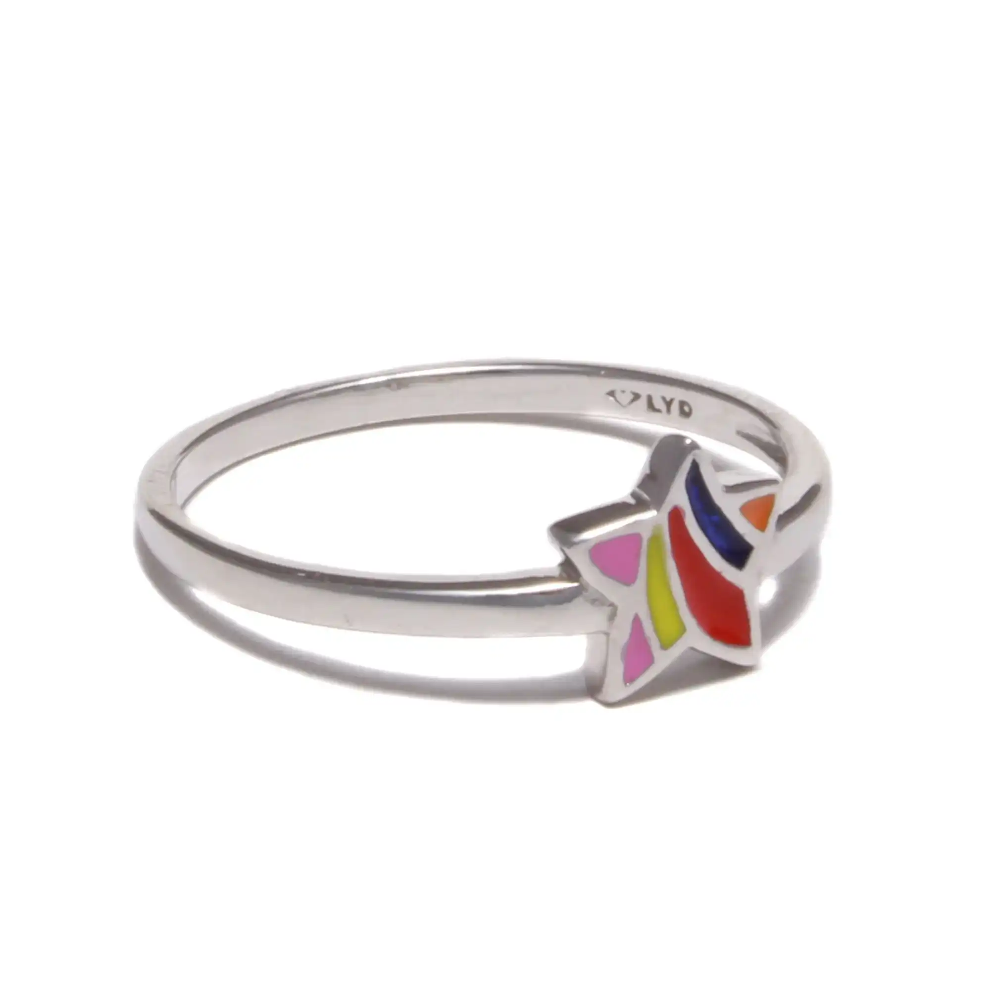 Dieser süße Kinderring setzt auf eine leuchtende Sternform, die mit bunten Akzenten sofort ins Auge fällt. Das hochwertige 925 Sterling Silber sorgt für langlebige Qualität und einen angenehmen Tragekomfort. Die rhodinierte Oberfläche schützt vor Anlaufen und verleiht dem Schmuckstück einen brillanten Glanz.