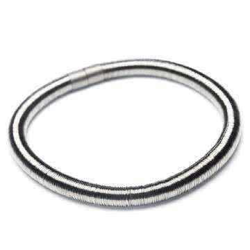 Hier haben wir ein ganz besonderes Stück Silbercollier für Sie - im Kern der Kette befindet sich ein Kauschukband, das in liebevoller Detailarbeit mit einem schier endlos langen Silber Draht umwickelt wurde. Diese Kette ist etwas Besonderes. Weil sich feiner Silberdraht scheinbar unendlich oft um sich selbst gewickelt hat, um dann in diesem kleinen Kunstwerk zu enden.
