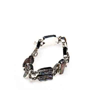 This is a combination of polished stainless steel and rubber strands that casually join together to form a bracelet.