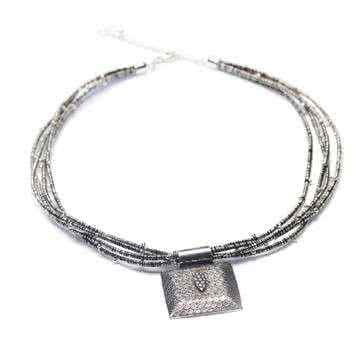 Unusual garnet silver necklace