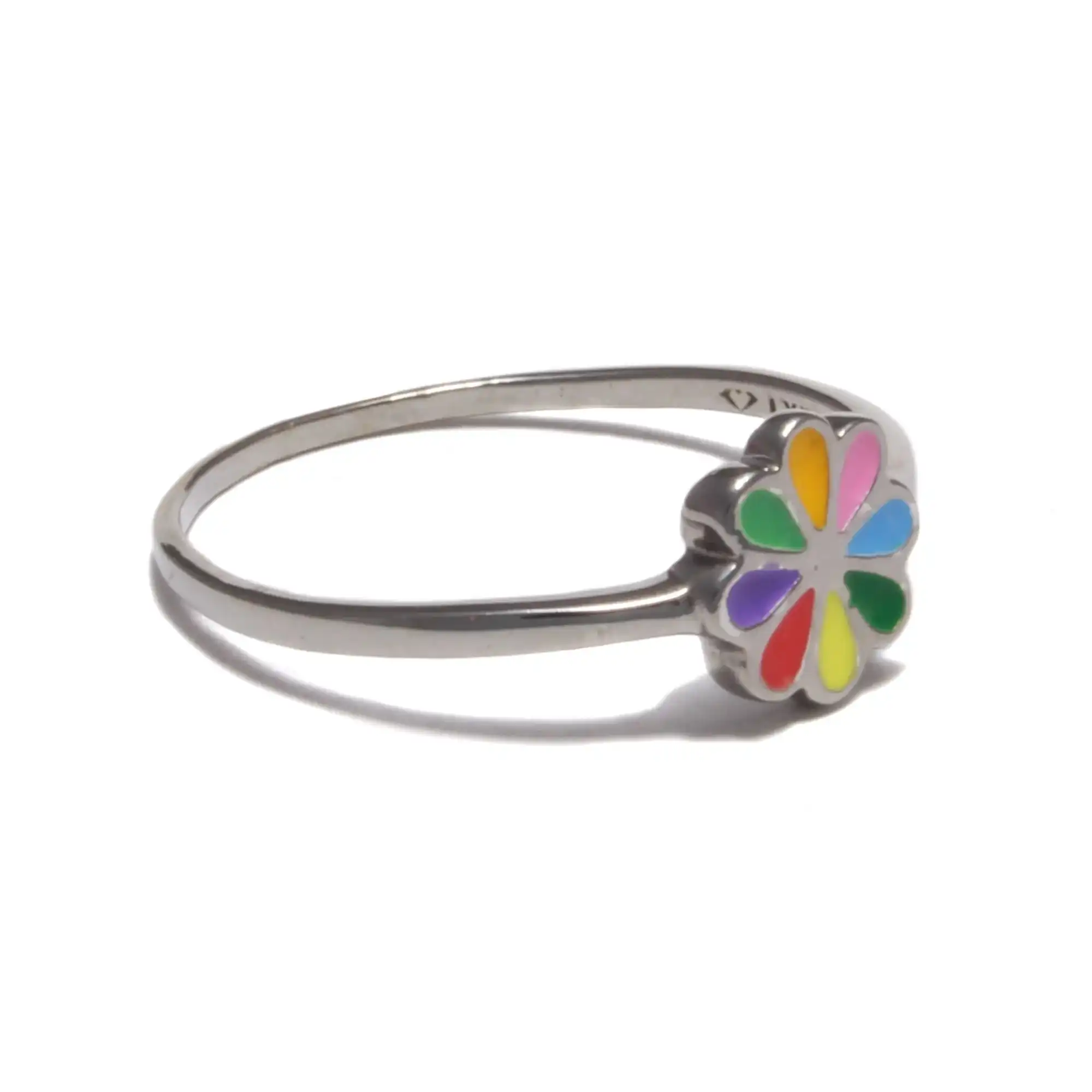 This piece of jewelry adds a real pop of color to your collection - hand-applied enamel in rainbow colors on a delicate silver flower (approx. 8 mm in diameter). The base is genuine 925 Sterling silver, which provides a very high-quality foundation. Thanks to the additional platinum layer, the silver remains permanently radiant and does not darken.