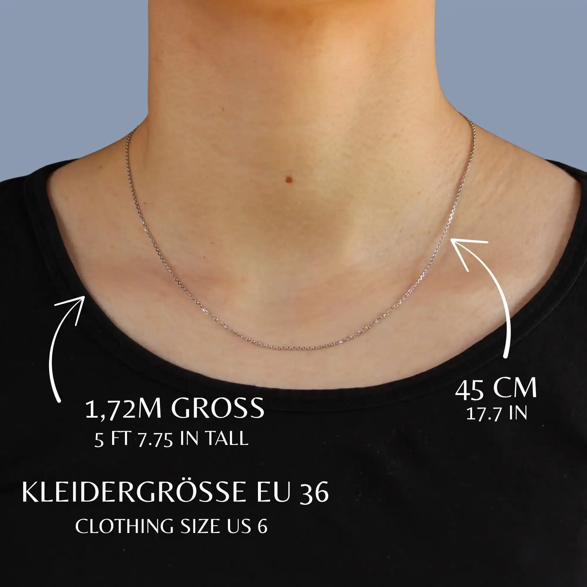 This slender 45 cm anchor chain made from genuine 925 sterling silver combines subtle chic with long-lasting quality. The delicate thickness of approx. 1 mm makes it the perfect companion - whether worn alone or with a pendant. Thanks to the diamond cut on four sides, each individual link sparkles with maximum light reflection.